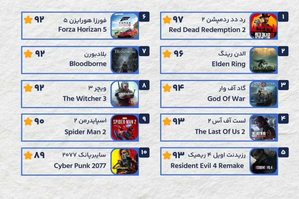طبق امتیازدهی این سایت، بازی رد دد ردمپشن۲، الدن رینگ و گاد آف وار برترین بازی‌های ۱۰ سال اخیر دنیای بازی‌های ویدیویی هستند.