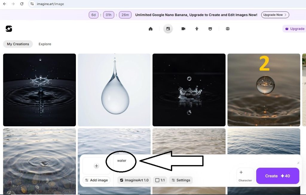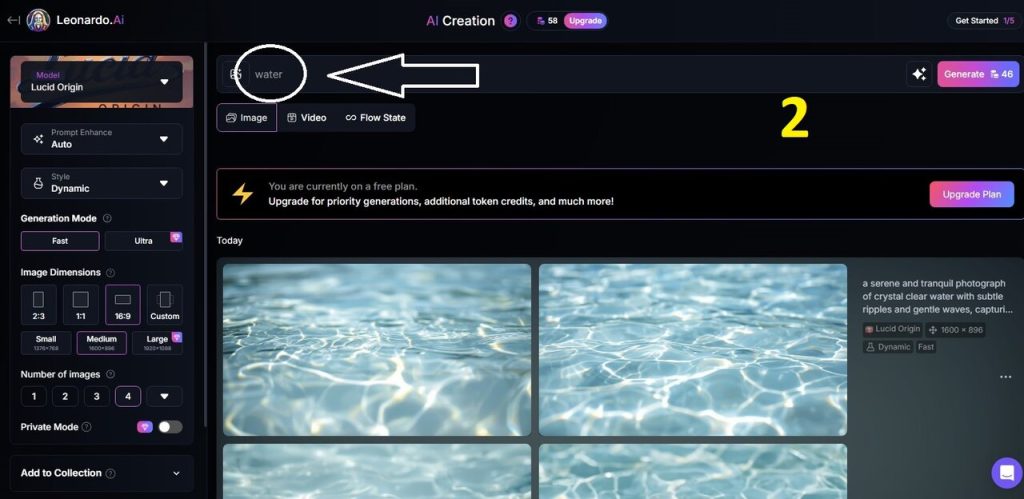 در ناحیه علامتگذاریشده باید پرامپت اختصاصی تولید تصویر را وارد کنید تا سیستم بتواند تصویر مورد نظر را ایجاد کند.