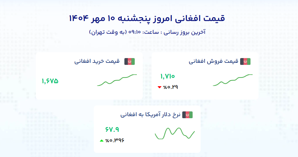 قیمت افغانی امروز پنجشنبه ۱۰ مهر ۱۴۰۴