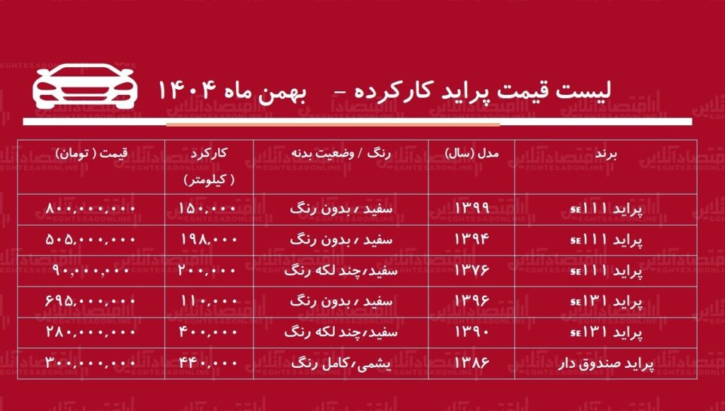 گرانترین و ارزانترین پراید کارکرده در بازار امروز ۴ بهمن ۱۴۰۴